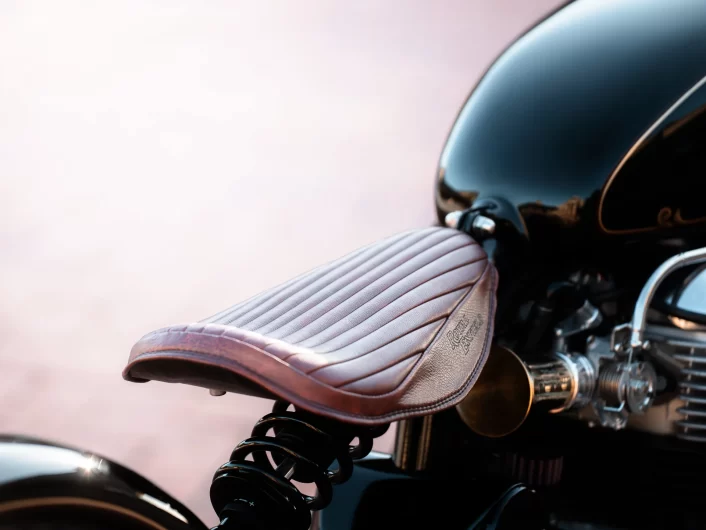 Throughout the motorcycle, every detail reflects that balance. For instance, a hand-built girder front end anchors the design. At the same time, carefully considered paintwork completes the form. Together, these elements tell a story of transformation, intention, and respect for the past.