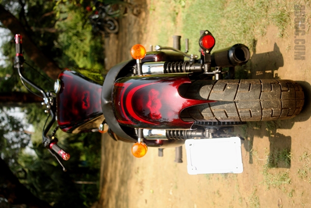 The best part of the bull is probably the riding style with the wide handlebar and low seat, which was slightly moved backside cause of the modded fuel tank, causing the more of a Chopper feelings while riding. Apart from the major modifications, there are number of touches restoring the bike. There comes the rare mudguard, the new Indicator lights, the headlight etc…