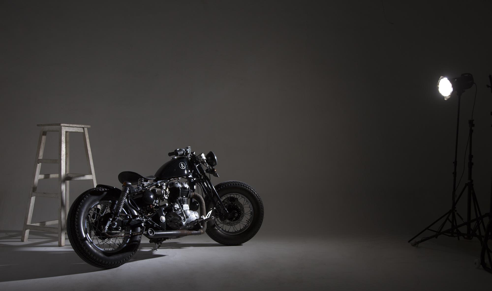 Custom bikes have been part of a lifestyle or we can say a style statement since they inhabited, from shifting one to another motorcycle, upgrade performances, altering the stock look and it keeps going on throughout the lifetime endlessly, customized motorcycles are artistic resemblance of one’s uniqueness! No matter how old one becomes – motorcycles have been associated with style and glamour; it is a symbol of rebellion, freedom and protest. From changing the entire structure and look of existing bike models to building completely new ones from scratch, India got some distinct talented bike designers, who are rewriting the rules of how bikes should look. Today we have one such builder here with us, who enormously ascertained their competence in their very first build – KR Customs from Chennal city and witness a Royal Enfield Desert Storm 500cc’s transformation into a unerring topnotch bobber – Indori!modified-bobber-royal-enfield-desert-storm-500cc-photographyt-by-kr-customs