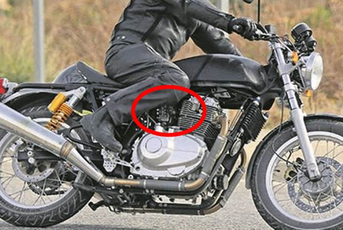 The spotted bike looks nothing different that a Continental GT apart from having a bigger engine installed in it and it is expected the final production version will not carry much of the existing GT style. Royal Enfield Britain based technical center and its subsidiary Harris Performance are leading the development process.