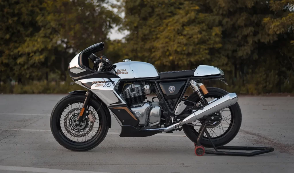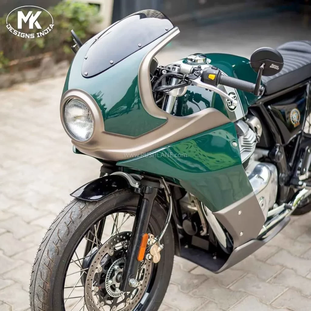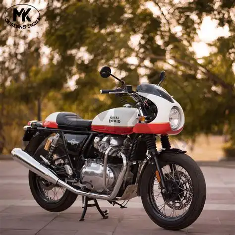 MK Designs India offers complete café racer kits for Royal Enfield models like the Interceptor 650 and Continental GT 650. Each kit includes a café racer fairing and a matching seat with cowl. Riders can choose different seat sizes for comfort and riding style. As a result, the motorcycle gains a classic café racer profile.
