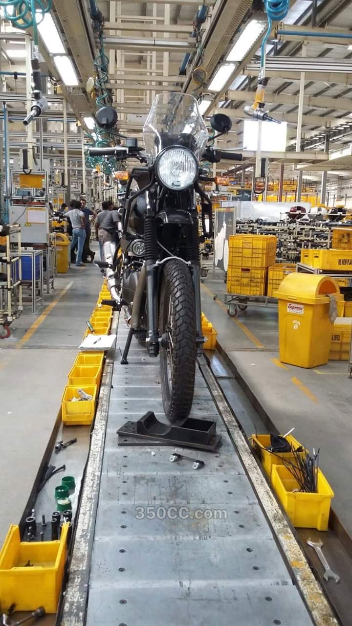 The first ever adventure touring off-roading bike from Royal Enfield, Himalayan production started in their chennai factory, and the clear image from production house is over internet. The Himalayan will debut with Royal Enfield’s brand new engine, rumoured to be a 400cc/410cc, single cylinder motor that’ll benefit from oil-cooling (presence of radiator confirmed by Allen), and, in all probability, fuel injection as well.