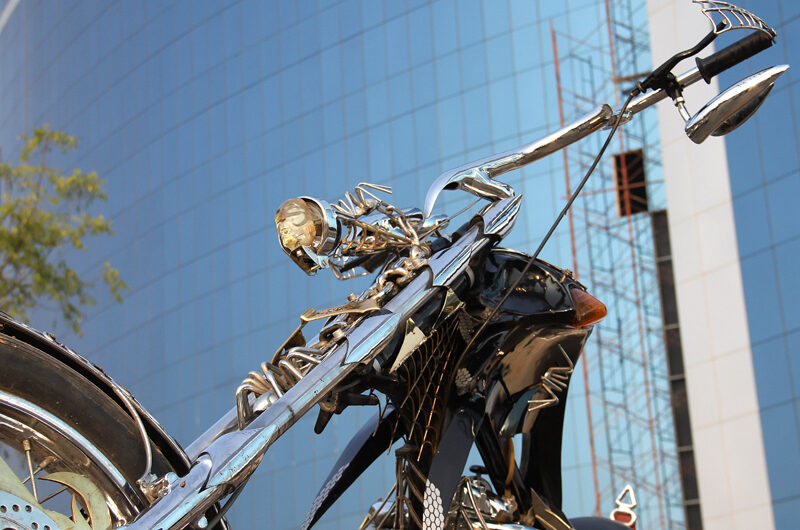 “I was in Dubai where I saw the chopper bikes, loved them but also felt just placing a broad expensive rear tyre with extra long front shockers, is not really designing. There has to be more to this. But placing a sculpture on the bike without planning the merging details may not also do justice to the fact that its a bike, that shud be motorable, yet not a laughing stock. So I created spider” Neeraj told to 350cc.com on a note.
